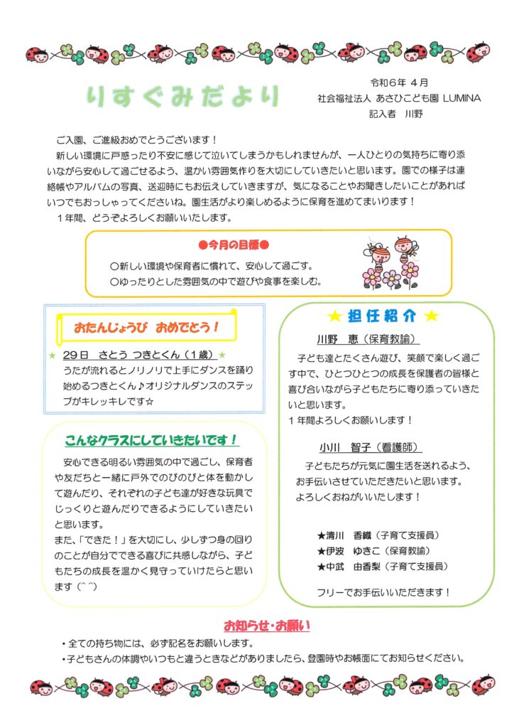 令和6年4月 りす組だより