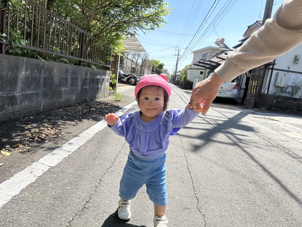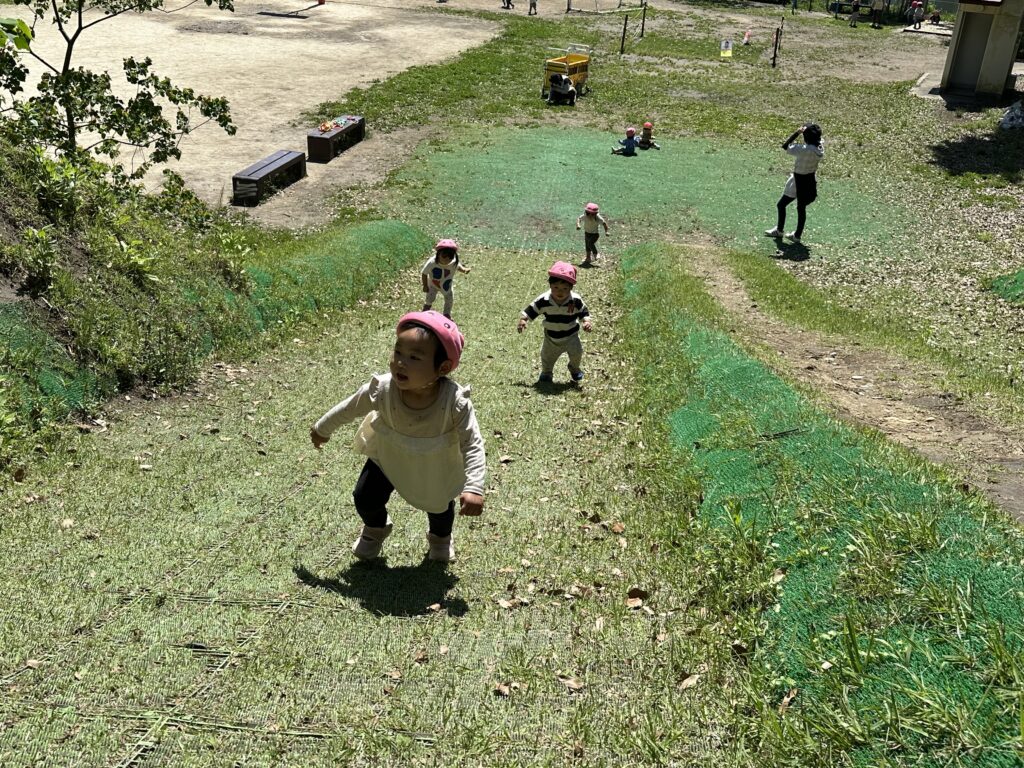 さくら公園で急な坂道を登ったり降りたりを楽しんでいました♪体幹がしっかりしてきました!