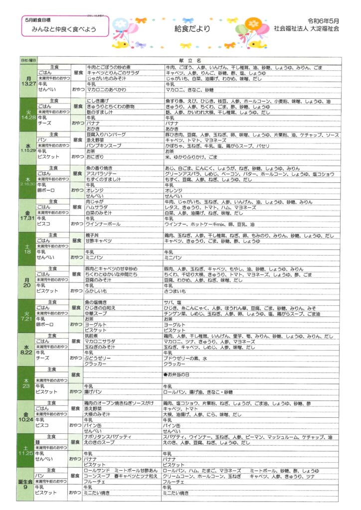 令和6年5月 給食だより