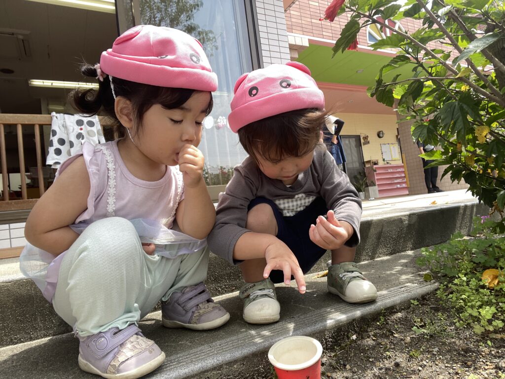 ダンゴムシブームの子ども達🍃お外に行くとダンゴムシ探しに夢中になっています!虫が怖い子も多いですが興味津々!触れる機会も増えて少しずつ触れるようになってきましたよ😁