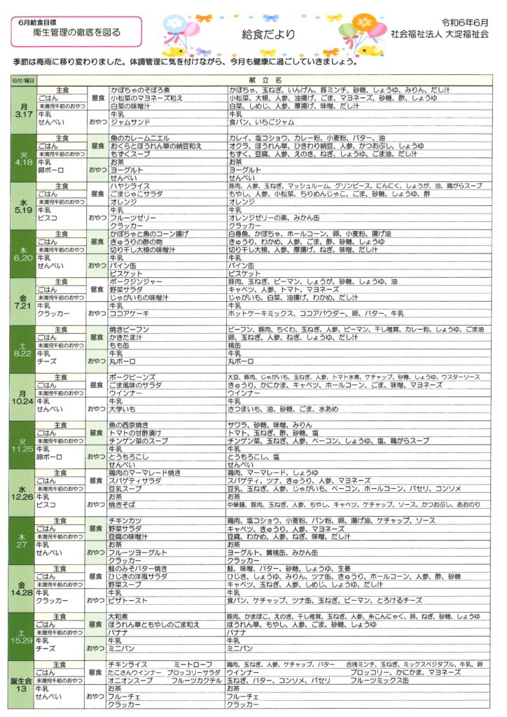 令和6年6月 給食だより