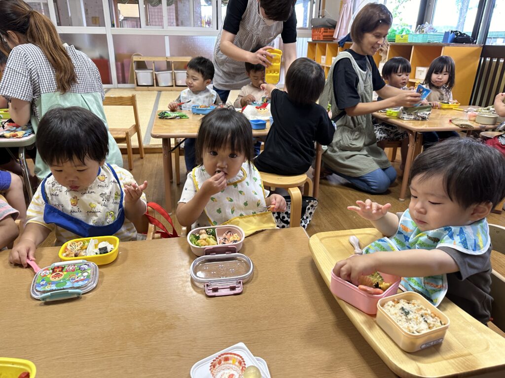 楽しみにしていたお弁当を、嬉しそうに自分でパクパク食べる子どもたち😋何度も「おいし〜♡」と言いながら食べている子もいましたよ😆愛情たっぷりお弁当のご準備、ありがとうございました😌