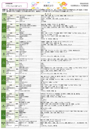 令和6年9月 給食だより LINE 2024.09.012025.05.08 9月30日(月) 9月27日(金) 9月26日(木) 9月25日(水) 9月24日(火) 9月20日(金) 9月19日(木) 9月18日(水) 9月17日(火)