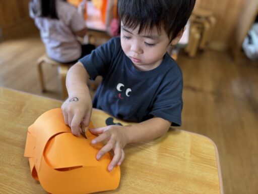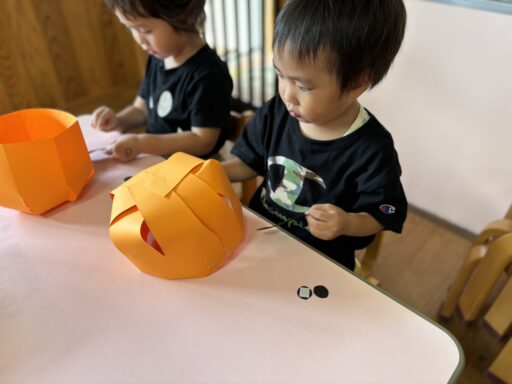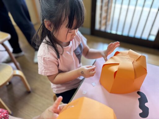 10月は、ハロウィンやマルシェに向けた製作あそびをメインに取り組みましたが、手に触れる絵の具の感触やパーツを張りつける工夫など、子どもたちのいろんな気づきや体感をみることができました🌟お友だちと一緒に1つの作品に取り組むことで、自然と笑顔も多くみられた製作あそびでした😊