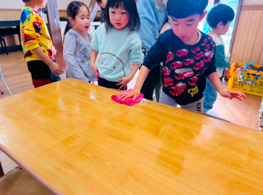 マラソン大会も終わりどんどんお兄ちゃんお姉ちゃんになってきているばんだ組さん。ご家庭でも成長を感じる様子が見られるのではないでしょうか〜クラスでは、台拭きやほうき・雑巾での掃除の手伝いなど、率先して行ってくれます。また、着替えも自分たちでほとんど完璧にできるようになり、時間も余裕を持って行動できるようになってきています‼️