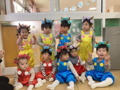 ダンスが大好きなりす組さんは練習の時からノリノリで楽しんでいて😆🎶でも、ステージに上がったら緊張してしまうのでは・・・💦という保育者の心配は良い意味で裏切られ、ダンスもお返事も手遊びも立派にかわいく披露してくれました😊💖