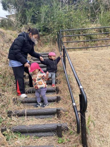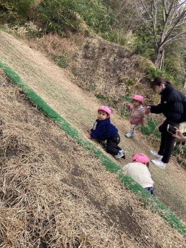 さくら公園へお散歩に行きました♫シャボン玉をしたり、坂を上ったり、うさぎ組さんと一緒に山を探索したり…⛰️