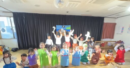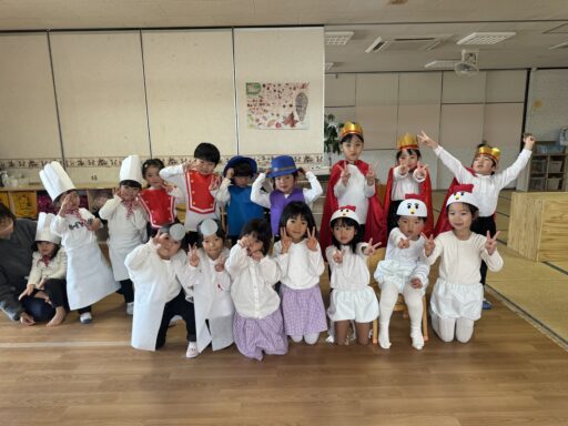 今年度は初めての縦割りクラスでの劇だったので年長さんは、年少さん・年中さんを引っ張る!という重役もあり大変だったと思いますが、年長さんのがんばりに年少さん・年中さんもよくついてきてくれたと思います🥺✨本当に子どもたちみんなよく頑張りました🤍🤍
