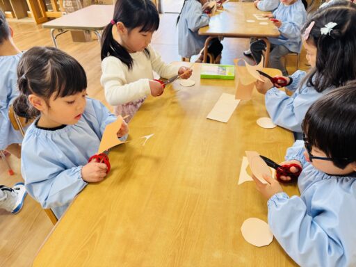 そして年中さんもあと1か月になりました・・。年中さんの子どもたちと過ごした時間はあっという間でたくさんの成長を見せてくれました。できないことができるようになったり、嫌いなものが食べられるようになったりととても成長を感じます。集団遊びや友達も増え楽しい反面、喧嘩や意見の食い違いなどありますが、ソーシャルスキルを通してお互いの気持ちを知り、トラブルも少しずつ自分たちで解決できるようになりました。いよいよ4月からは(年長)さんですね。お兄ちゃん・お姉ちゃんになれることを楽しみにしており、お世話をしようと頑張っています。