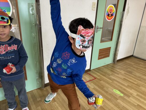2月3日は子どもたちが1年で最もドキドキする行事の豆まきが行われました🫘朝から園に鬼が来るということで、いつにも増して大人しい子どもたち(笑)りす組さんに鬼がいることを確認した瞬間、数人からポロポロ涙が溢れていました🥲いざ鬼が年長さんのお部屋に来たら恐怖心を持ちながらもここは年長さんらしく勇敢にみんなで「鬼は外!」と鬼退治頑張りましたよ☺️これで今年1年みんなで健康に何事もなく過ごせそうです🌿