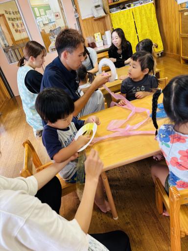 - 今回は縦割りの時間でしたが同じ歳のお友達の関わりも見てみたいと思いました。準備や時間等、難しいとは思いますが縦割りのオープン保育・年少、年中、年長の活動時間のオープン保育があると良いなと思います。