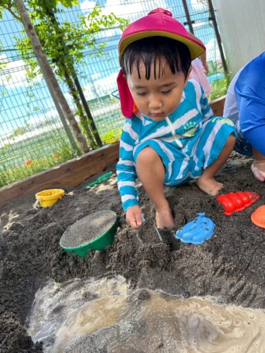 キラキラまぶしい真夏の太陽が照りつける中うさぎ組の子どもたちは毎日たくさん汗をかきながら夏の遊びを楽しんでいます🏖☀️