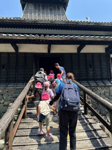 今回はお出かけコースに「式部の里」を入れてカレーの具材を買い出しに行き、綾城の散策にジャンぶんこ広場での水遊び、カレー作り、花火…といろいろなことを楽しみ、夜には昔話のDVDを見ながら聞こえていたおしゃべりもすこーしずつ聞こえなくなり、いつの間にかぐっすりの子どもたちでしたよ😴