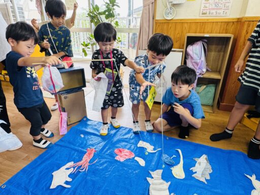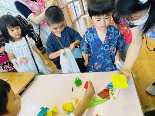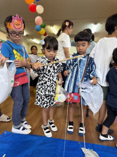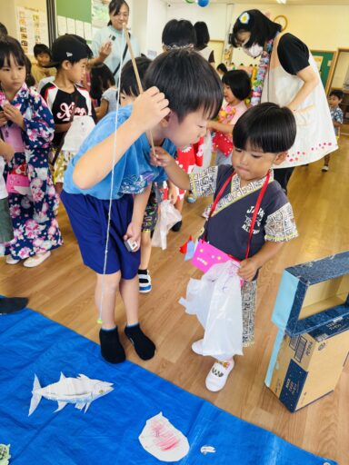 8日には待ちに待ったワクワクサマーデイが開催されました🏮🌺当日はお気に入りの洋服や甚平を来て登園でき、先生達に「先生!可愛いでしょ?このベルトかっこいいよ!」などと自慢げに話す姿がとても可愛らしかったです💛朝お忙しい中、ご準備ありがとうございました🙇♀️