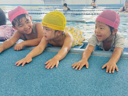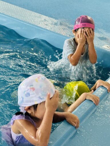 スイミングが始まり、あっという間に4ヶ月が経ちました。この4ヶ月でびっくりするぐらい水中に潜る事ができ、泳げるようになろうと自由時間には、バタ足や潜る練習する様子が見られます🥺諦めずに真剣に取り組んで頑張る年中さん!指導者に言われたことを素直に聞きいれ、「やってみよう」と挑戦する姿には本当に成長を感じています🥹