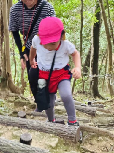 子ども達が楽しみにしていたお山に登ってきました🏔急な登り降りや凸凹道でしたが、お友達同士で「ここ気をつけてね〜!木がありますよ!」と声掛け合いながらも、ワクワクドキドキしみんなで登り切る事が出来ました👏😊