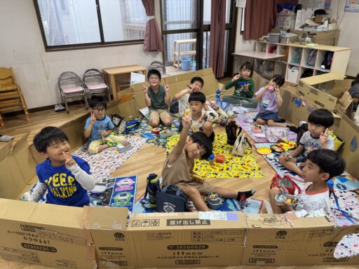 今月のお弁当の日は生憎のお天気だったのでお散歩から予定を変更し、みんなでダンボールで秘密基地を作り、そこでお弁当を食べました😋🍴🍱🎶 誰一人置いてけぼりになることなく、それぞれが思い思いに意見を出し合いながらグループごとに個性溢れる秘密基地が完成していましたよ🤭
