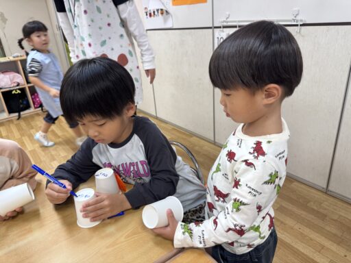 今月は縦割りクラスでの活動で紙コップを使った玩具を作りました🎶 活動前に作る玩具の完成品を見せるとそれはそれはノリノリなひつじ組さんでした🤭年長さん、年中さん、年少さん関係なしにお互いこまっている友だちを助け合いながらみんなで楽しく活動に楽しむことが出来ましたよ✂️身近にある輪ゴムと紙コップだけで作れる玩具なので子どもたちに作り方を教えて貰いながらお家でも是非お休みの日に作ってみてください😆