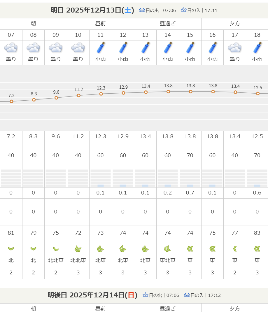 13日の当日は、天気予報では、午前中は何とか天候が持ちそうな見込みです。