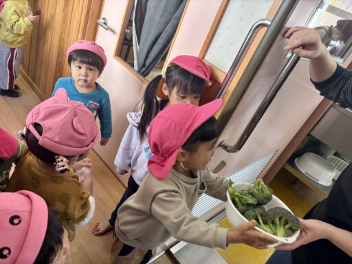 給食の先生に持って行った後は、いつ食べれるかな〜と出てくるのをソワソワ待ち遠しくしている子ども達です☺️