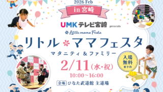 お便り リトル*ママフェスタ in 宮崎 開催のお知らせ 子育て中のママ・パパ、これからママ・パパになる方へ。家族みんなで楽しめるイベント「リトル*ママフェスタ in 宮崎」 が開催されます。子育てを応援する企業ブースや、親子で楽しめる体験、ステージ企画など、マタニティ期から子育て中のご家庭まで、... 2026.01.26 お便り
